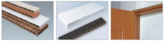 該生產線專用于寬幅PVC異型材生產線、木塑發泡門板、裝飾板擠出生產。生產線具有產量大,擠出穩定,發泡倍率高等優點?缮a各種裝 飾類制品,用途廣泛。制品表面硬度高,光滑平整,比重可控制在 0.6-0.9kg/m3之間。