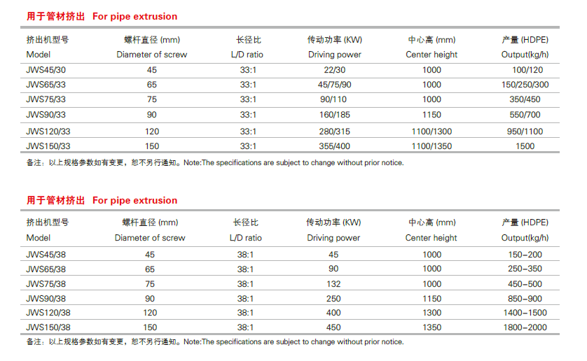HDPE高效節能單螺桿擠出機技術參數