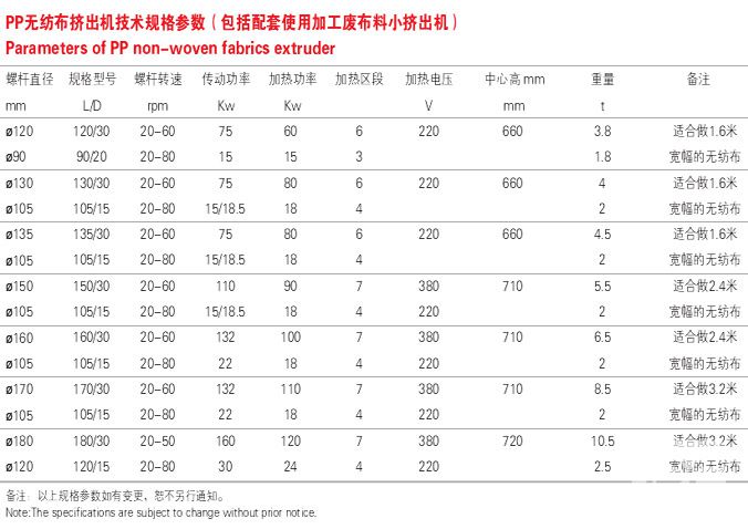 JWM系列PP無紡布螺桿擠出機(jī)主要用于紡粘法PP無紡布料的擠出生產(chǎn)。 該擠出機(jī)一般為兩臺(tái)擠出機(jī)串聯(lián)擠出,