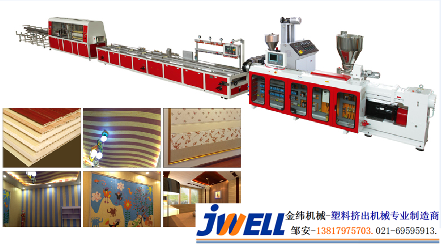 拆裝方便, 省時省力花色樣式種類繁多, 可以替代墻漆, 墻紙等傳統裝潢材料環保, 隔熱, 防潮, 防霉, 保溫, 防火, 隔音, 時尚, 美觀, 方便清潔金緯機械作為國內領先的塑料擠出設備生產商, 順應時代發展潮流, 現隆重向市場推出PVC快裝墻板/軟晶墻板/竹木纖維集成墻板生產線